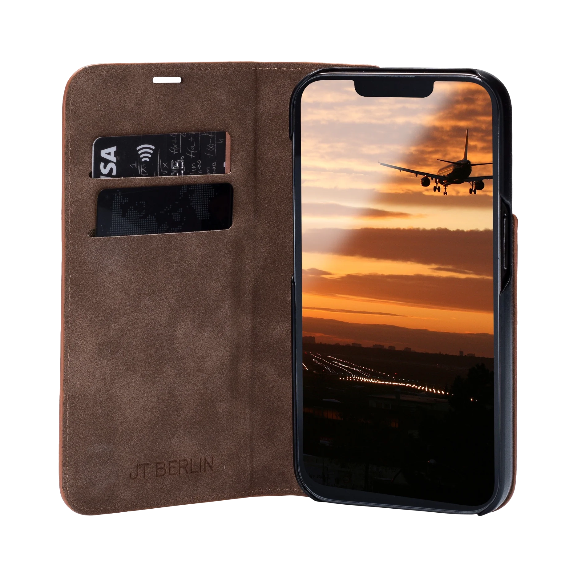 JT Berlin Echtleder BookCase Tegel iPhone 17, cognac