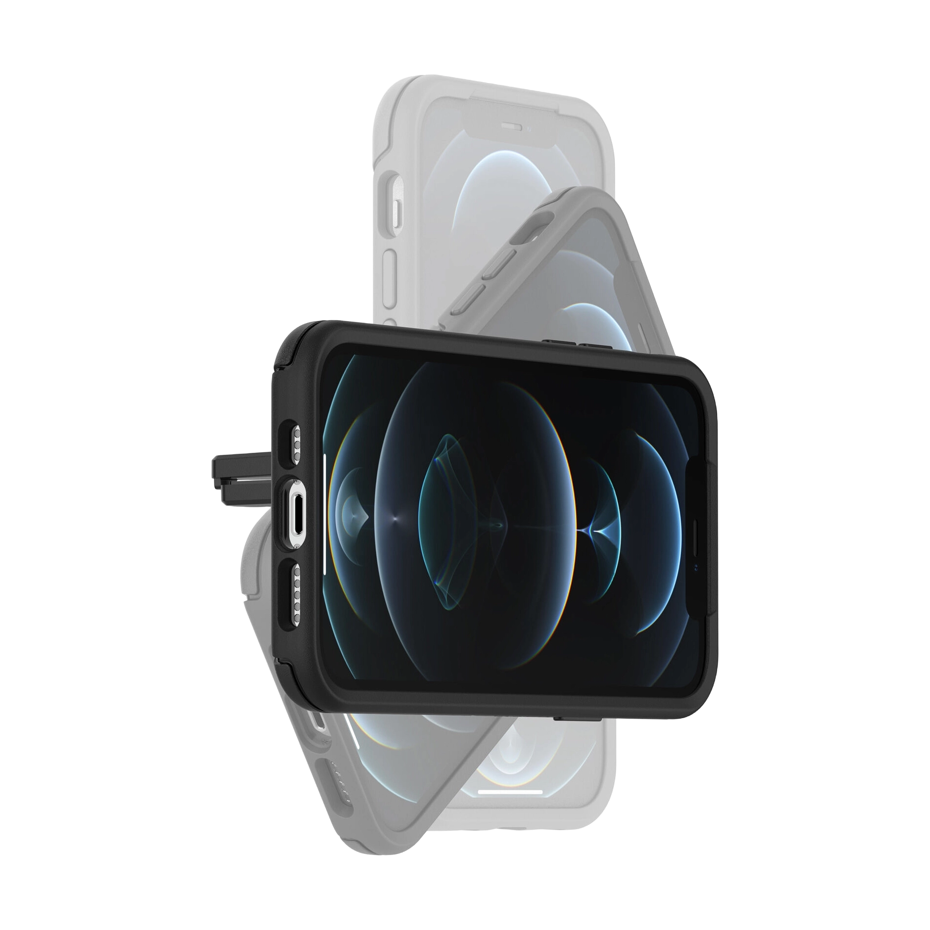Konzipiert für die nahtlose Interaktion mit der MagSafe-Technologie, starke magnetische Ausrichtung und Befestigung, montierbar an horizontalen und vertikalen Lüftungen, einfach einstellbar für gute Sichtbarkeit und leichten Zugriff, hält das Telefon im Quer- oder Hochformat sicher am Platz, widerstandsfähiges OtterBox Design.
